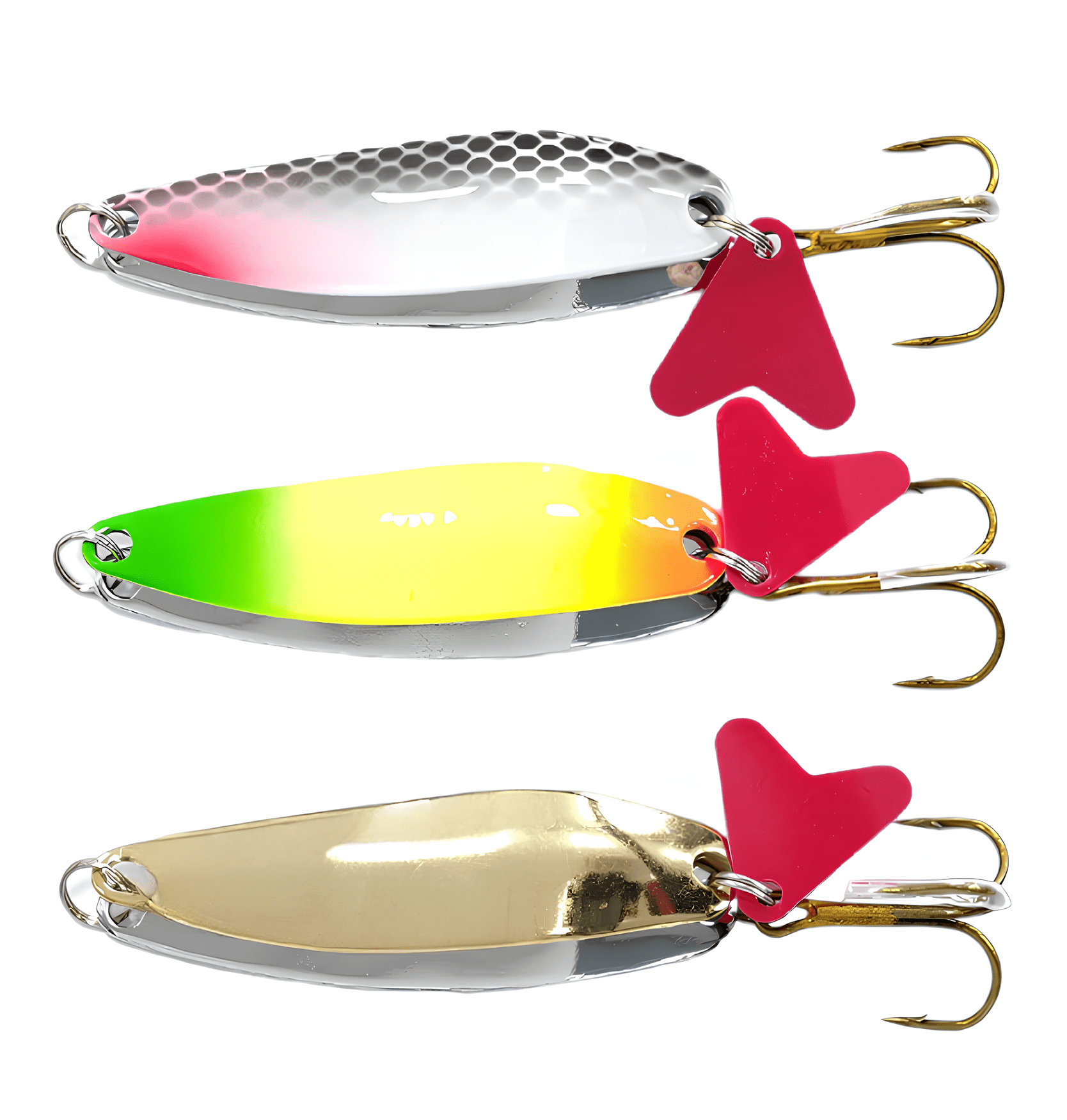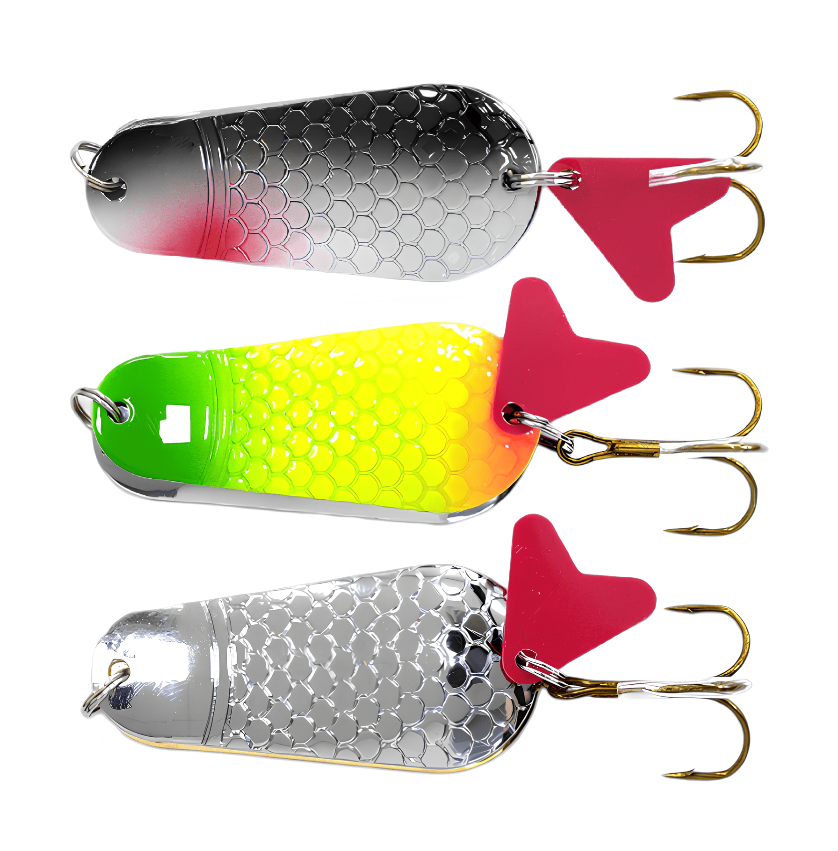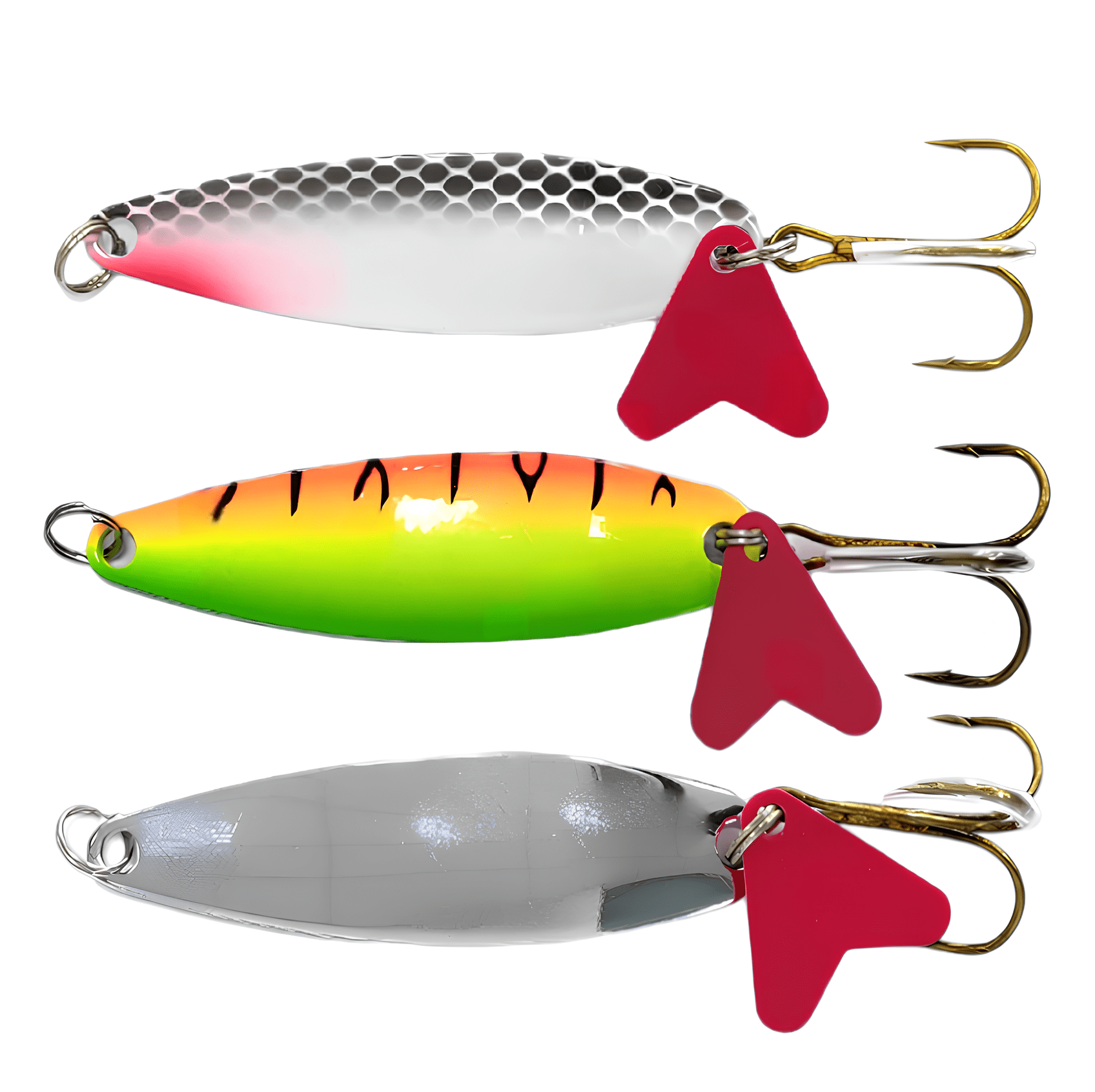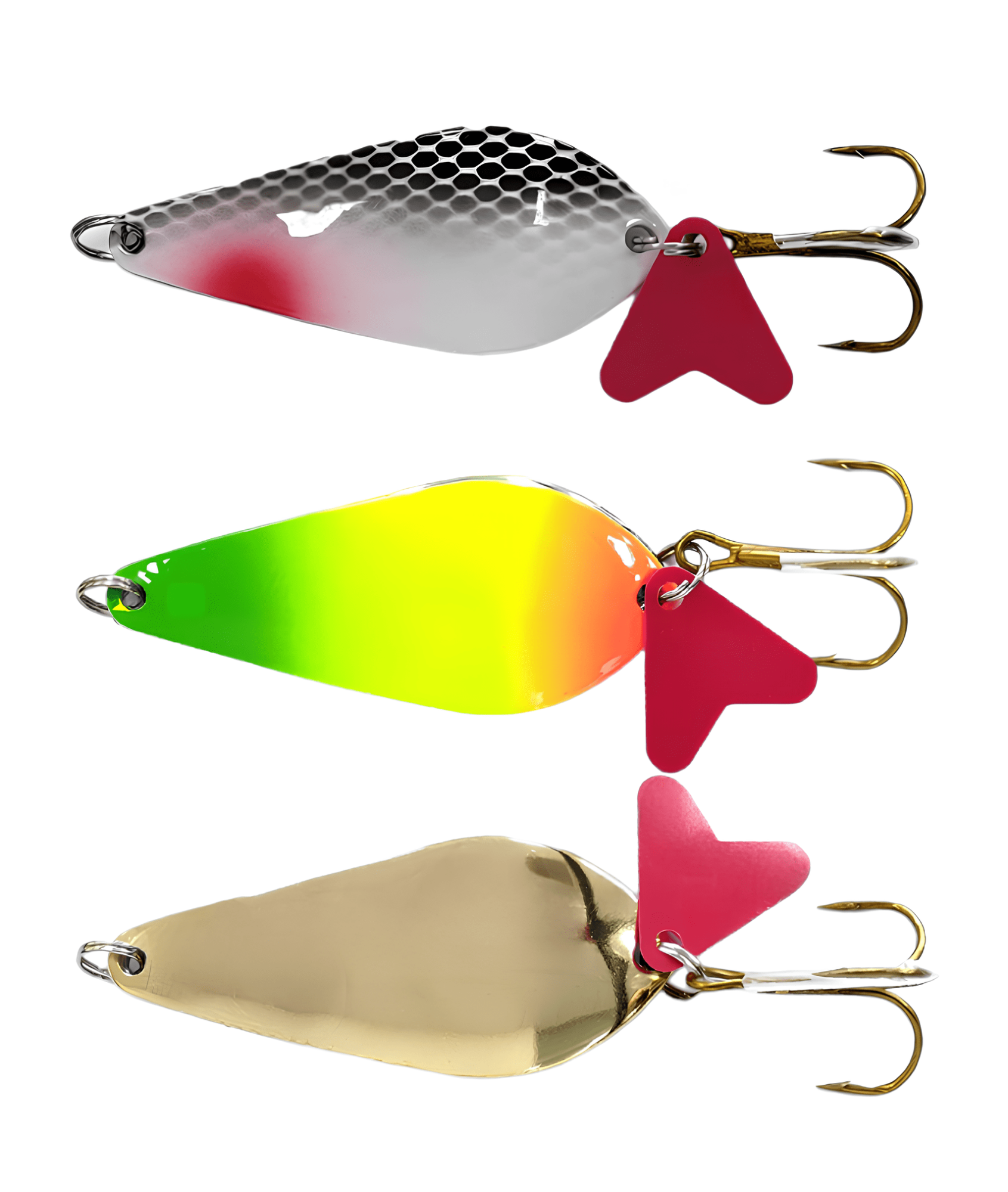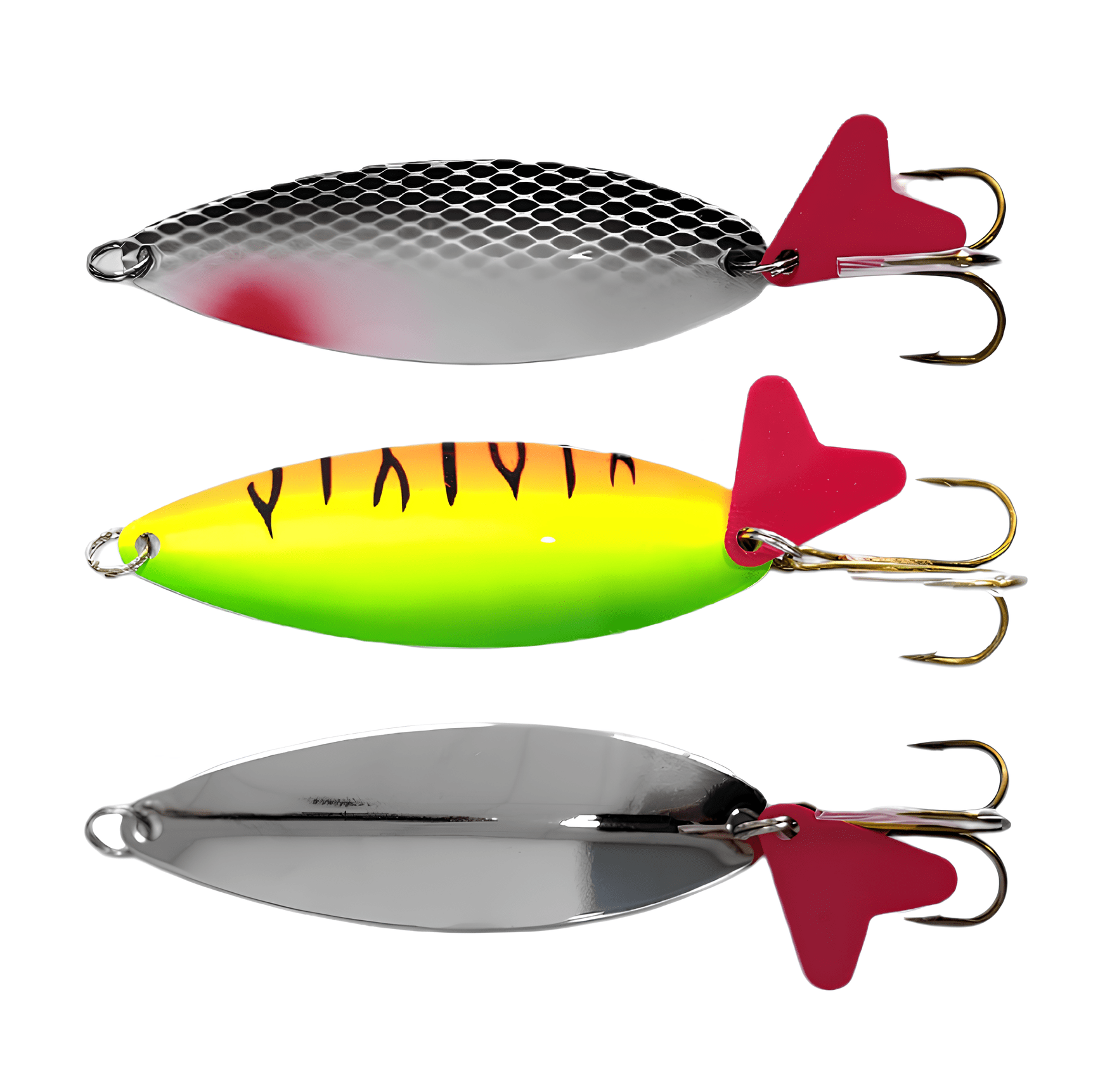 Колеблющиеся блесны отличаются разнообразием форм, но на некоторых из них можно увидеть дополнительные элементы, такие как плавники. Эти плавнички служат для стабилизации игры приманки как в поперечном, так и в продольном направлении, уменьшая вероятность срыва во вращение при активной проводке.